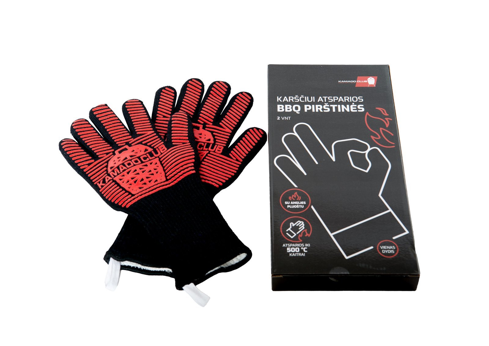 Medžiaginės, karščiui atsparios pirštinės, kurios apsaugos rankas nuo karšto kepsninės paviršiaus. KamadoClub pirštinės pagamintos iš itin kokybiškų medžiagų. Sudėtyje yra naujausios kartos Deyan medžiagos, gaminamos iš anglies pluošto, kuris pasižymi paslankumu, lankstumu, atsparumu ypač didelei kaitrai ir tiesioginiam sąlyčiui su liepsna. Komplektacijoje – 2 vienetai.